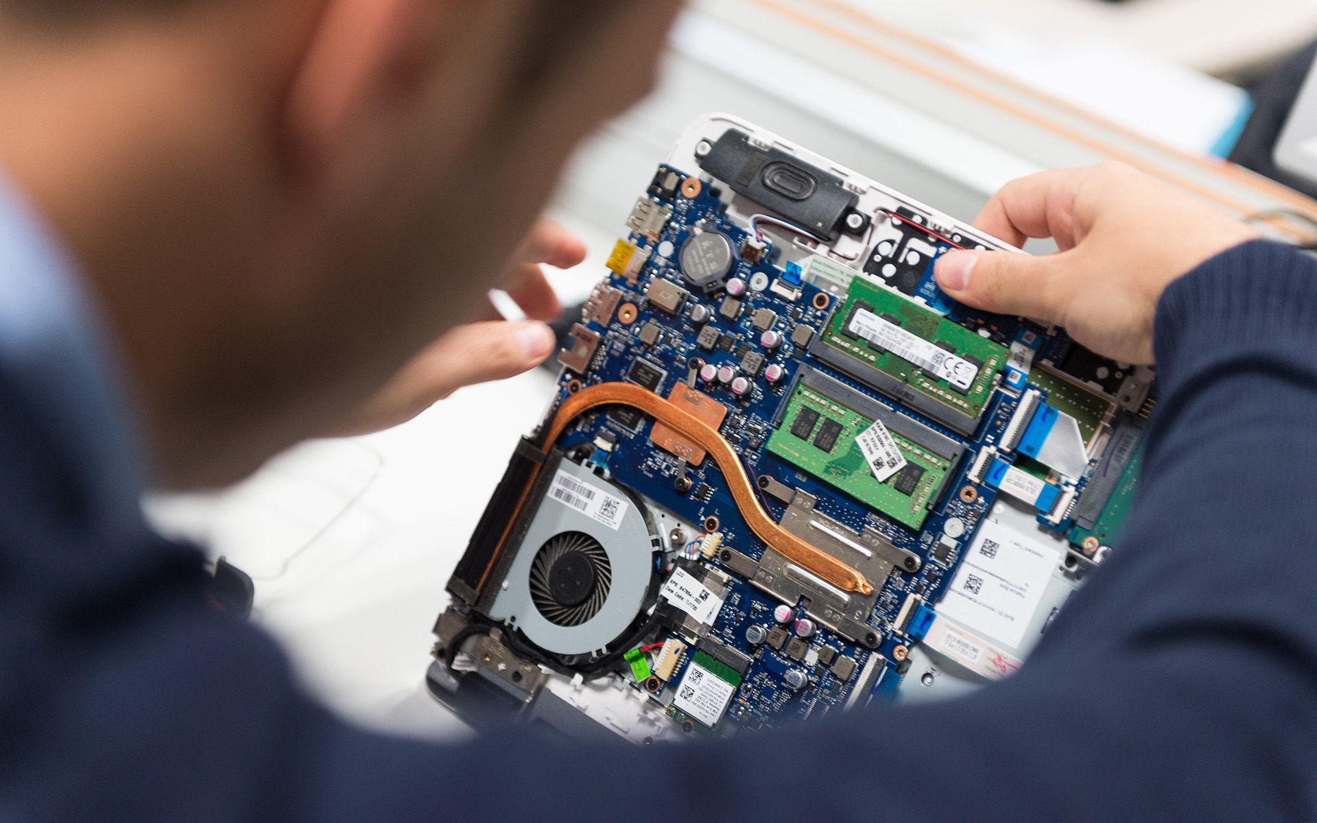 Previamente a esta clase práctica en el taller, los alumnos de SMR han tenido una clase virtual de montaje. Luego, en el módulo de práctica dedican dos horas al día a “ensamblar” y conectar los componentes del equipo.