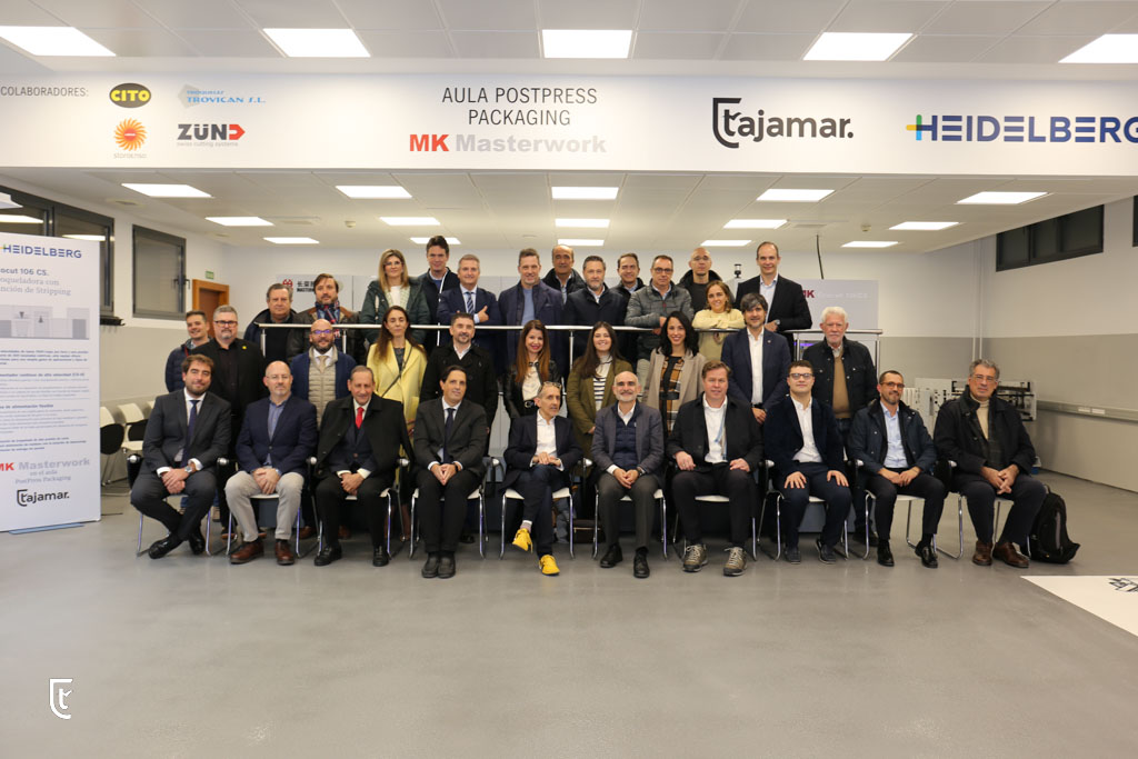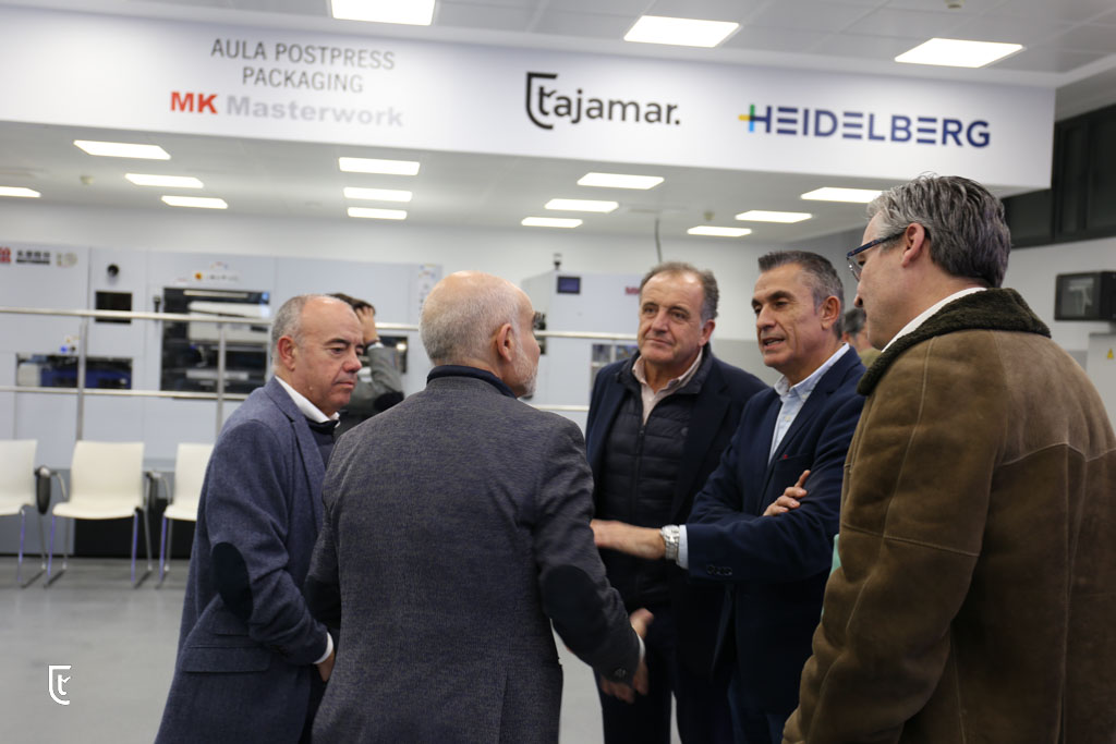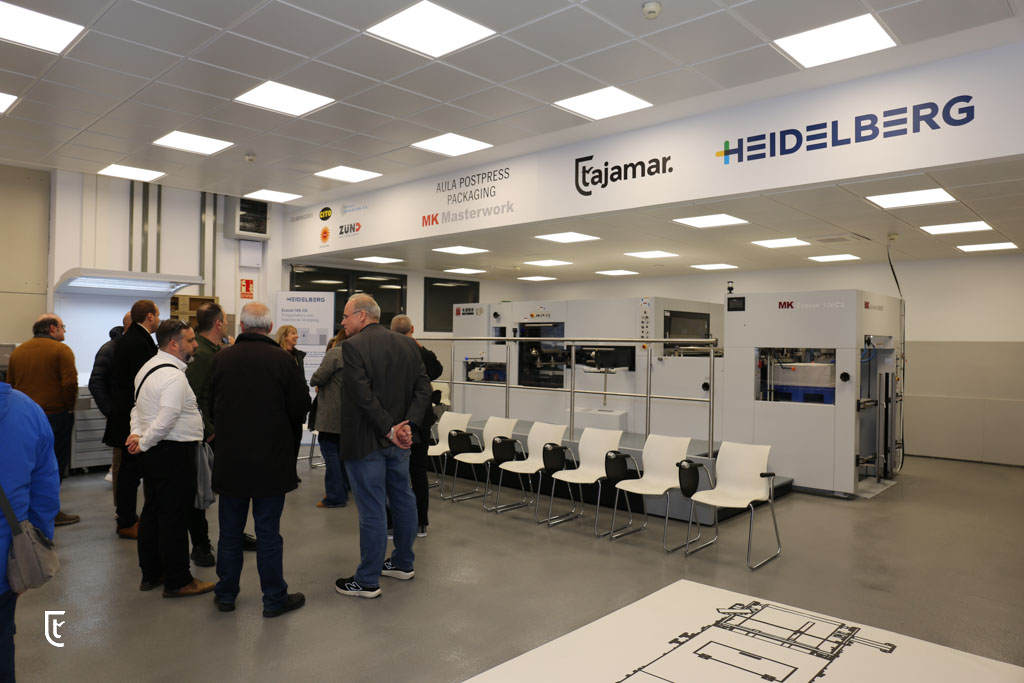 Este nuevo espacio contará con una troqueladora, una plegadora, una guillotina y una mesa de corte. Durante la inauguración del aula los asistentes conversaron sobre las posibilidades que ofrece este proyecto. De hecho, tras la firma del acuerdo entre Heidelberg Spain y Tajamar varias empresas se interesaron por participar en el mismo. El aula HEIDELBERG-TAJAMAR está concebida también como un ecosistema tecnológico de vanguardia para fomentar la investigación aplicada y la formación en innovación en la industria gráfica. Además, será un espacio multidisciplinar dotado con las últimas novedades de MK Masterwork pensado para demostrar las capacidades de los equipos de la marca en Postpress Packaging.